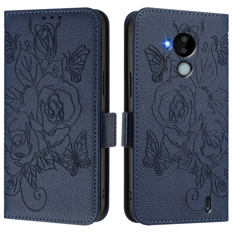 Funda de Cuero Antirrobo RFID con Relieve para Nokia C30 (Azul Oscuro)
