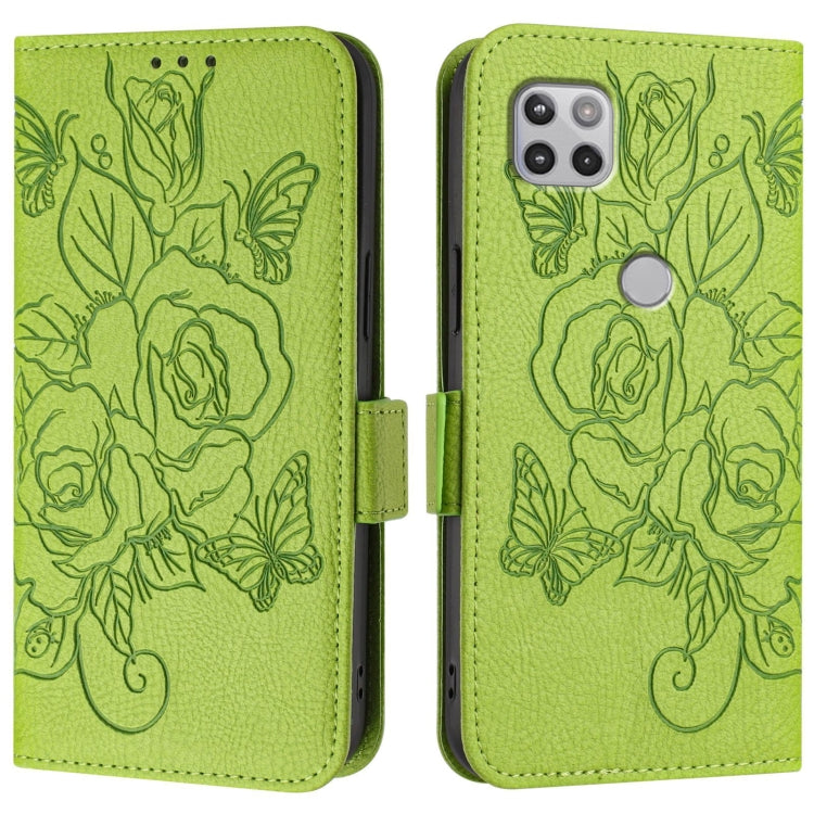 Funda de Cuero Antirrobo RFID con Relieve Rosa para Motorola Moto One 5G/G 5G 2020 (Verde)