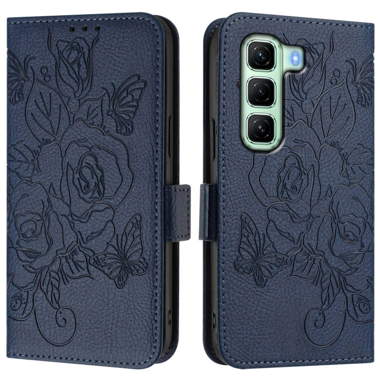 Funda Cuero Antirrobo Rfid con Relieve Rosa para Teléfono Infinix Hot 50 5G (Azul Oscuro)