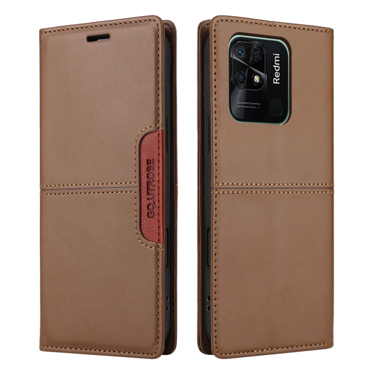Funda de Cuero Antirrobo Rfid para Redmi 10C Gqutrobe G01 (Marrón)