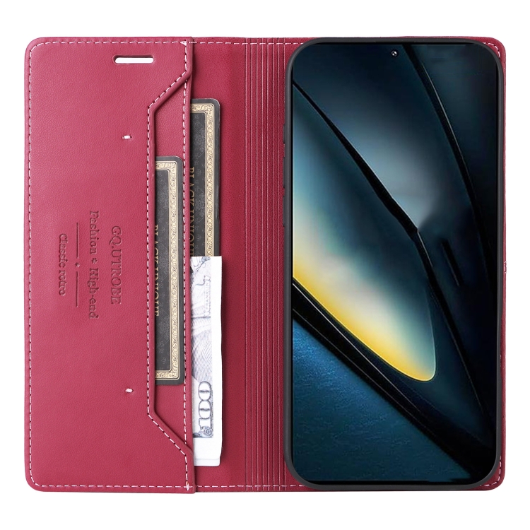 Funda de Cuero Antirrobo Rfid para Teléfono Xiaomi Poco F6 Gqutrobe G01 (Rojo)