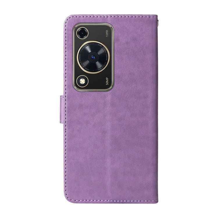 Funda de Cuero con 70 Flores de Mariposa en Relieve para Huawei Nova Y72 4G/Enjoy (Morado)