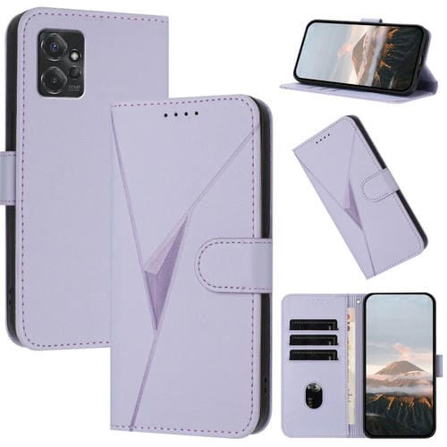 Funda de Cuero con Cierre de Hebilla y Diseño Triangular para Motorola Moto G Power 2023 (Morado Claro)