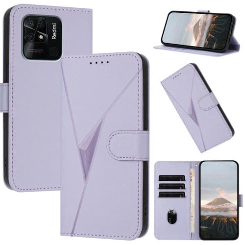 Funda de Cuero con Hebilla Triangular para Redmi 10C (Morado Claro)