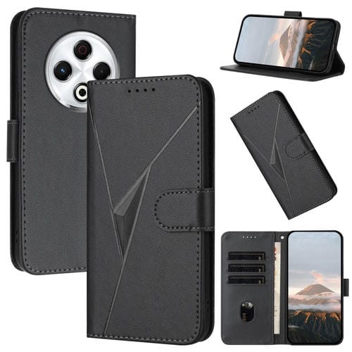 Funda de Cuero para Tecno Spark 30 4G con Cierre de Hebilla y Diseño Triangular (Negro)