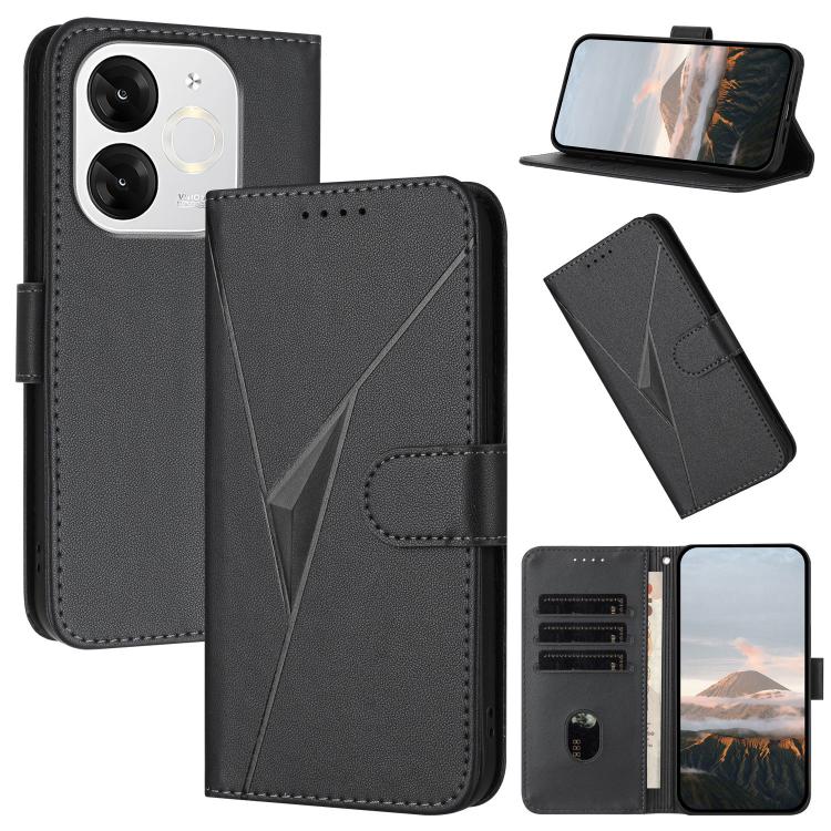 Funda de Cuero con Cierre de Hebilla y Diseño Triangular para Teléfono Itel A80 (Negro)