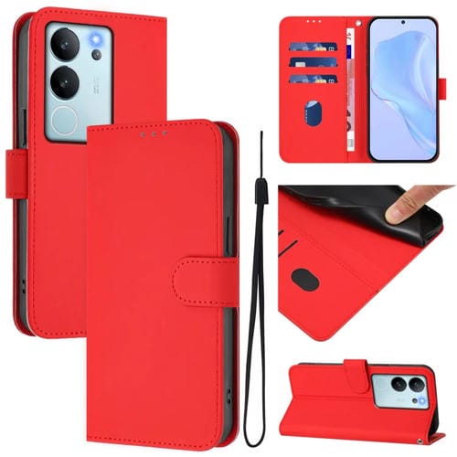 Funda de Cuero con Cordón para Teléfono con Sensación de Piel Global para Vivo V30 Lite 5G (Rojo)