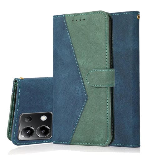 Funda de Cuero con Costuras de Dos Colores para Teléfono Xiaomi Poco X6 (Azul y Verde)