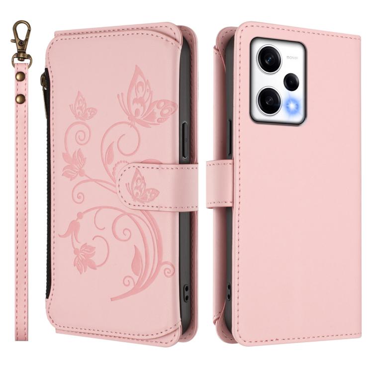 Funda de cuero con cremallera para Redmi Note 12 Pro 5G Global/Speed Butterfly Love Flower (rosa)
