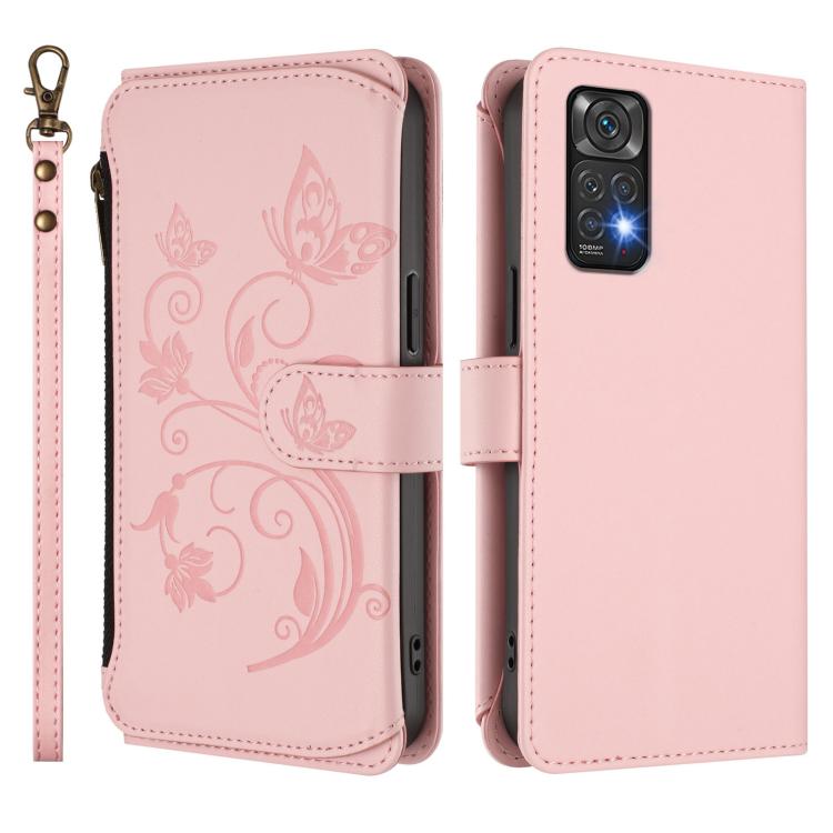 Funda de cuero con cremallera para Redmi Note 12S / Redmi Note 11S 4G, diseño de mariposas, flores y mariposas (rosa)