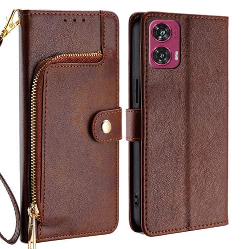 Funda de Cuero con Cremallera para Motorola Edge 50 Fusion 5G (Marrón)