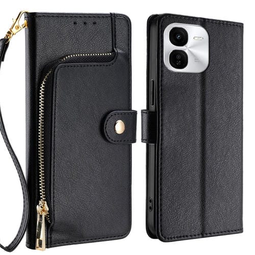Funda de Cuero con Cremallera para Teléfono Vivo Iqoo Z9X 5G (Negra)