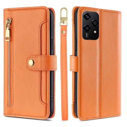 Funda de Cuero con Cremallera y Diseño de Ovejas para Honor 200 Lite 5G (Naranja)