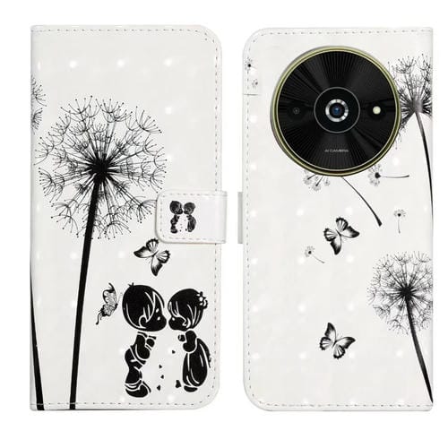 Funda de Cuero con Dibujo 3D En Relieve de Aceite para Xiaomi Poco C61 (Pareja de Dientes de León)