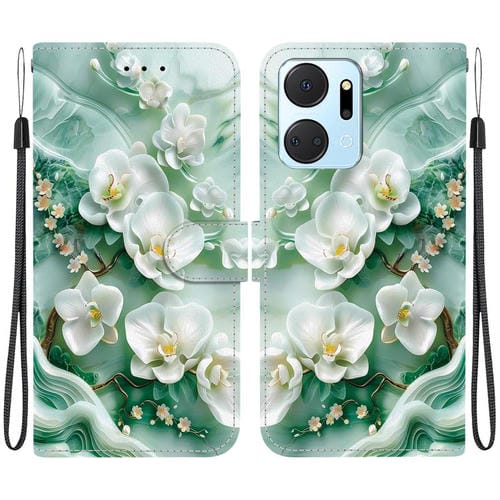 Funda de Cuero para Honor X7A con Dibujo de Colores y Textura de Cristal (Flores de Jade)