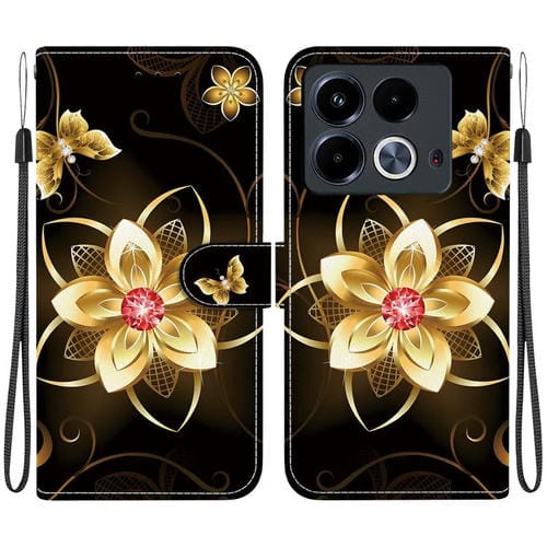 Funda de Cuero para Infinix Note 40 4G con Dibujo de Colores y Textura de Cristal (Flor Dorada)