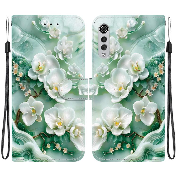 Funda de Cuero LG Velvet 5G G9 4G con Dibujo de Colores y Textura de Cristal (Flores de Jade)