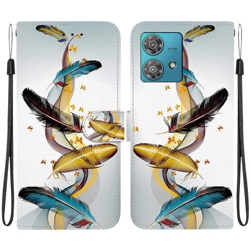 Funda de Cuero Motorola Edge 40 Neo con Dibujo colores y Textura Cristal (Plumas de Mariposa Doradas)