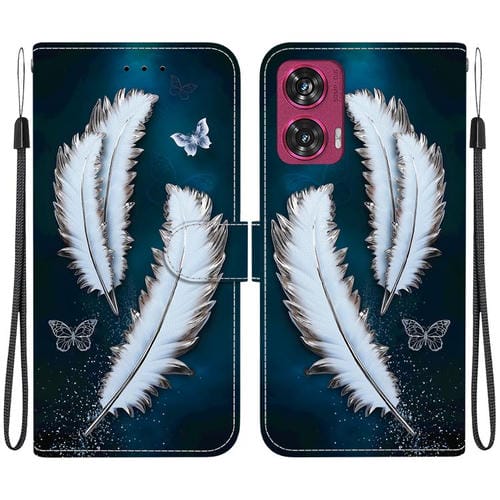 Funda de Cuero Motorola Edge 50 Fusion con Dibujo y Textura de Cristal (Plumas de Mariposa Blancas)