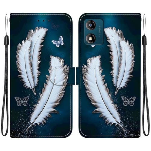 Funda de Cuero Motorola Moto E13 con Dibujo y Textura de Cristal (Plumas de Mariposa Blancas)