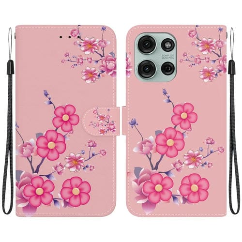 Funda de Cuero con Dibujo y Textura de Cristal para Motorola Moto G75 5G (Flores de Cerezo)