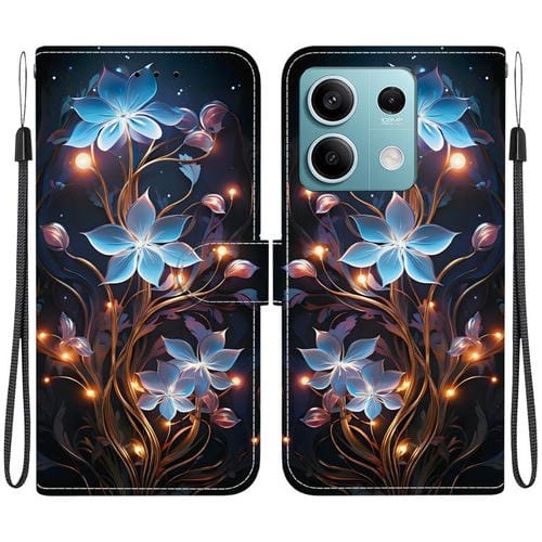 Funda de Cuero con Dibujo de Colores y Textura de Cristal para Redmi Note 13 5G (Flor de Linterna Pequeña)