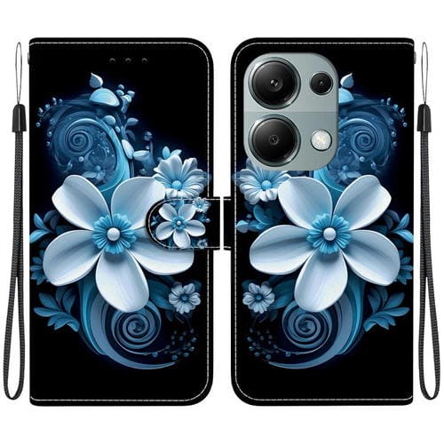Funda de Cuero con Dibujo de Colores y Textura de Cristal para Redmi Note 13 Pro 4G / Poco M6 Pro (Orquídea Negra)