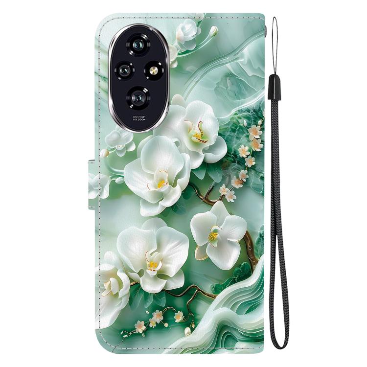 Funda de Cuero Honor 200 5G con Dibujo de Colores y Textura de Cristal (Flores de Jade)