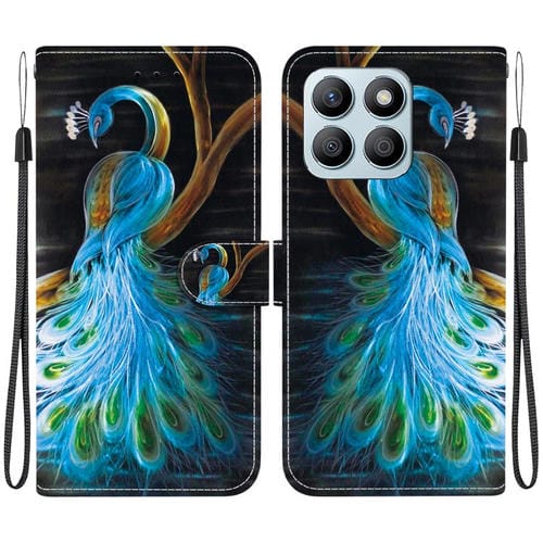 Funda de Cuero con Dibujo y Textura de Cristal para Honor X8B (Pavo Real)
