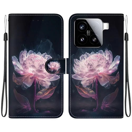 Funda De Cuero Con Dibujo De Colores Y Textura De Cristal Para Xiaomi 15 (Peonía Morada)