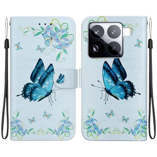 Funda De Cuero Con Dibujo De Colores Y Textura De Cristal Para Xiaomi 15 Pro (Pensamientos Azules)
