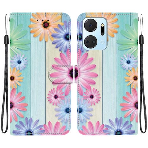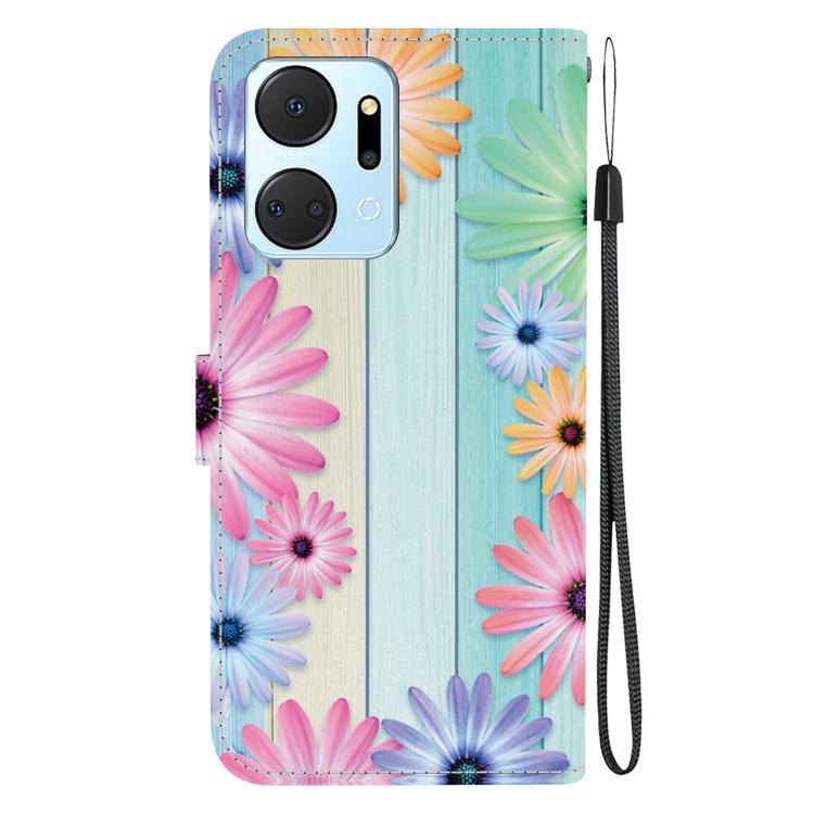 Funda de Cuero para Honor X7A con Dibujo de Girasoles y Textura de Cristal