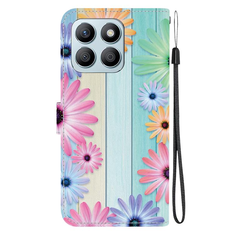 Funda de Cuero Honor X8B con Dibujo de Girasoles y Textura de Cristal