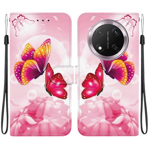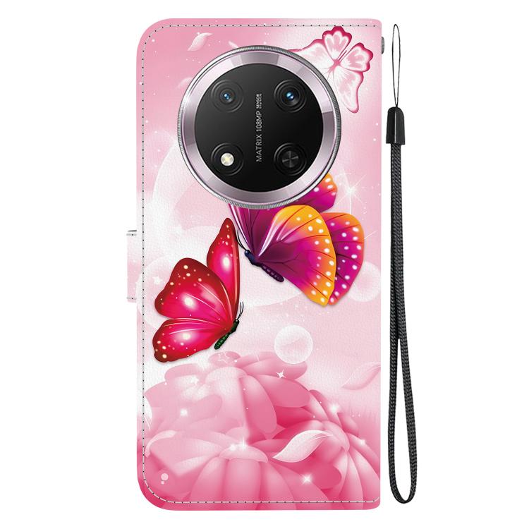 Funda de Cuero para Honor X9C con Dibujo y Textura de Cristal (Mariposas Rosas)
