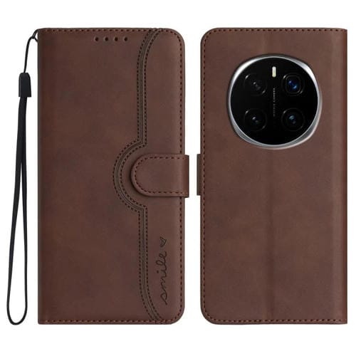 Funda de Cuero con Diseño de Corazón para Honor Magic7 con Tacto de Piel (Marrón)