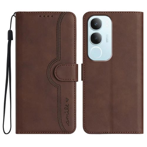 Funda de Cuero con Diseño de Corazón y Tacto Suave para El Teléfono Vivo Y19S (Marrón)