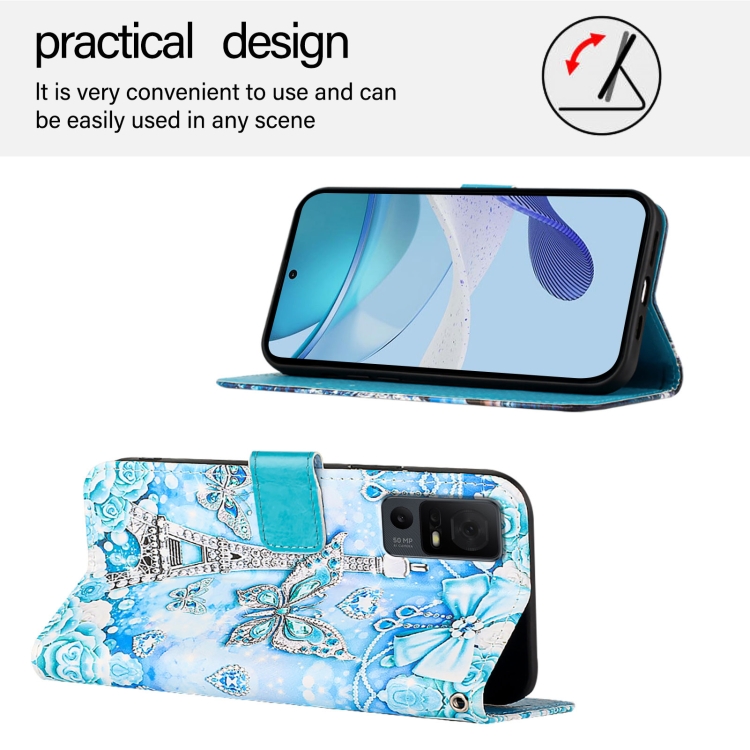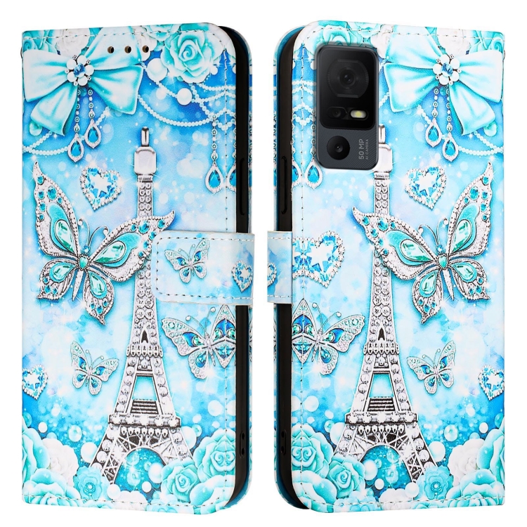 Funda de Cuero para TCL 40 XL/40T T608DL con Dibujo Mariposa en Forma de Torre
