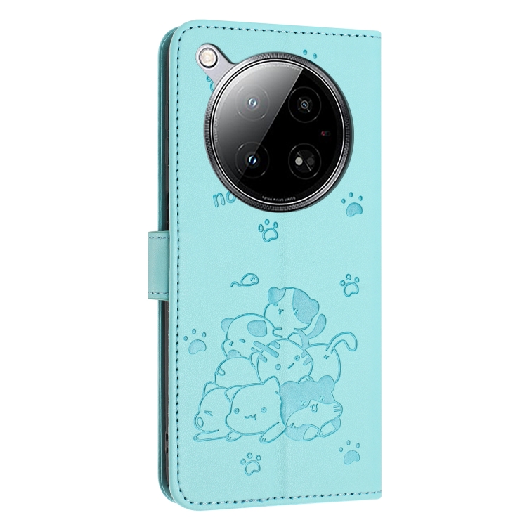 Funda de Cuero para Infinix Zero 40 4G y Zero 40 5G con Diseño de Gatito y Cordón (Verde Menta)