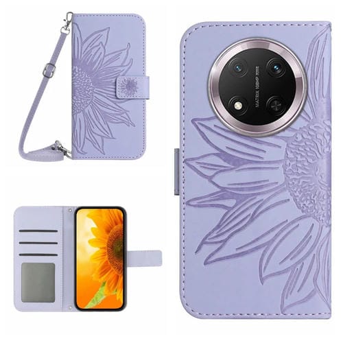 Funda de Cuero con Diseño de Girasol y Cordón para Honor X9C (Morado)