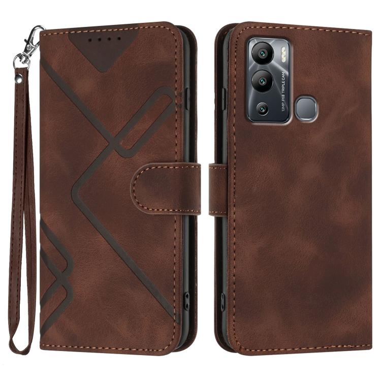 Funda de Cuero para Infinix Hot 12I con Diseño de Líneas y Tacto Suave (Café)