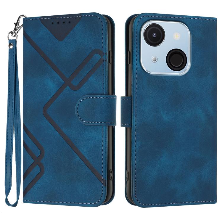 Funda de Cuero para Teléfono Itel A50C con Diseño de Líneas y Tacto Suave (Azul Real)