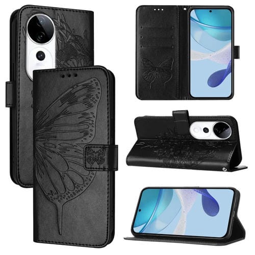 Funda de Cuero con Diseño de Mariposa En Relieve para El Teléfono Vivo S19 Pro (Negro)