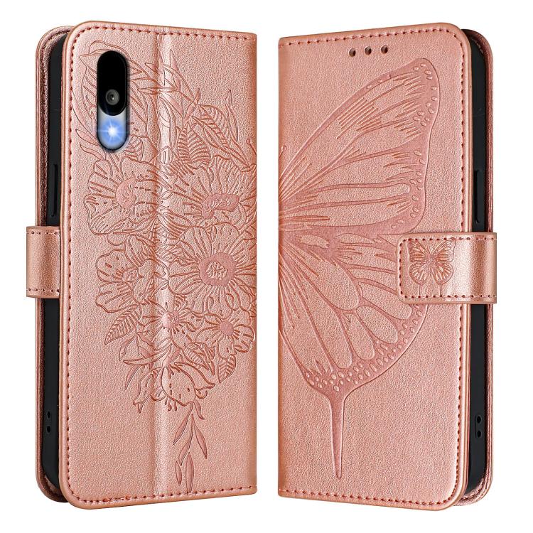 Funda de Cuero para Sharp Basio Active3 con Diseño de Mariposa En Relieve (Oro Rosa)