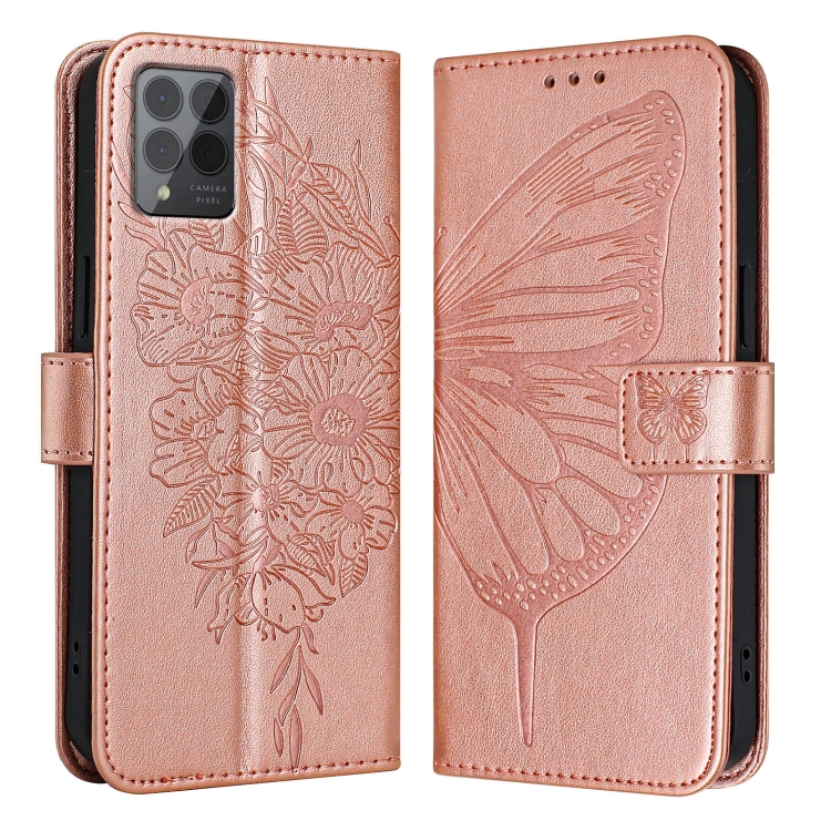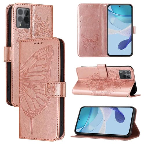 Funda de Cuero para T-Mobile Revvl 6 Pro/6X Pro con Diseño de Mariposa En Relieve (Oro Rosa)