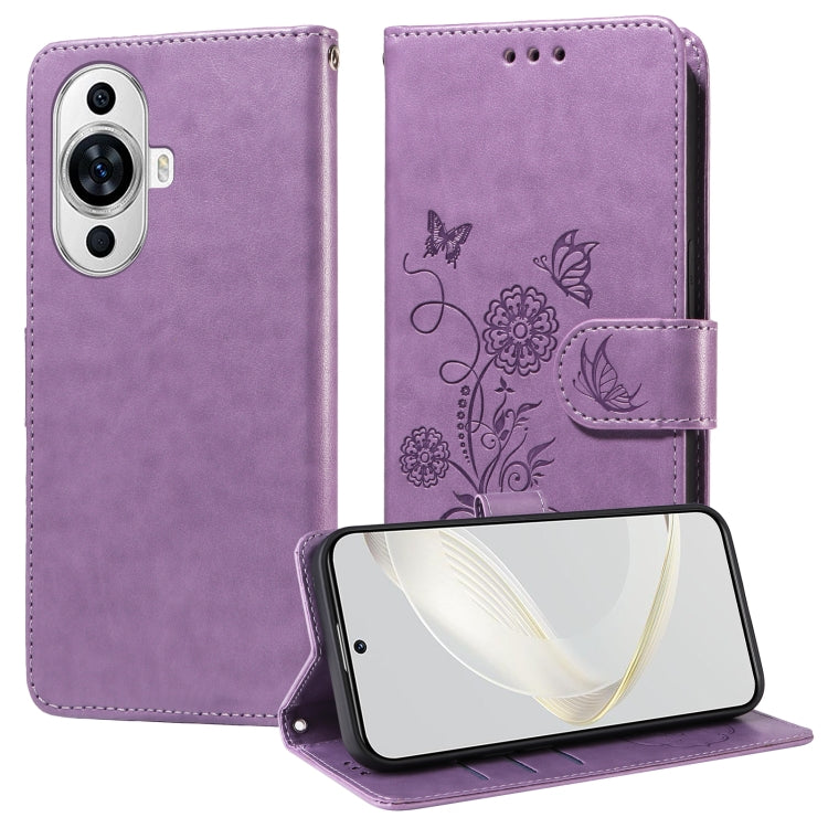 Funda de Cuero con Diseño de Mariposas y Flores en Relieve para Huawei Nova 11 Pro/Nova 11 Ultra (Morado)