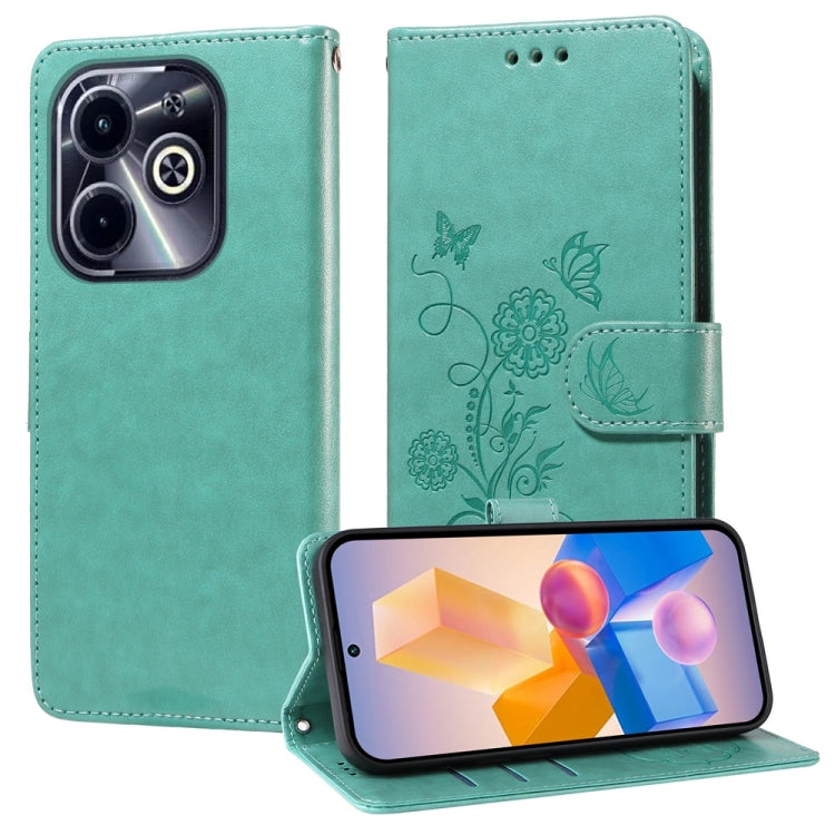 Funda de Cuero para Infinix Hot 40I con Diseño de Mariposas y Flores en Relieve (Verde)