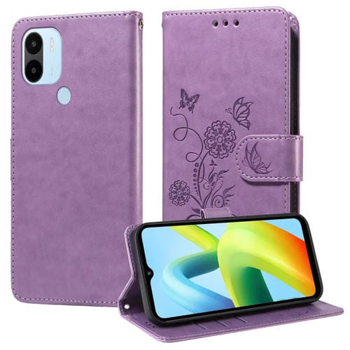 Funda de Cuero con Diseño de Mariposas y Flores En Relieve para Redmi A1 Plus/A2 Plus (Morado)