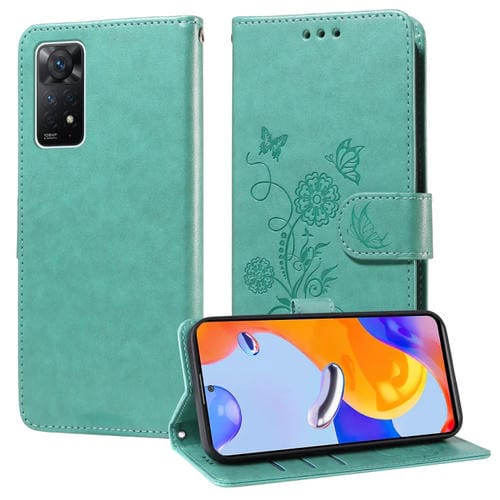 Funda de Cuero con Diseño de Mariposas y Flores En Relieve para Redmi Note 11 Pro 5G/4G (Verde)