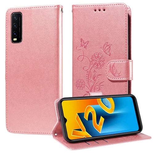 Funda de Cuero con Diseño de Mariposas En Relieve para Vivo Y20/Y20I/Y20S/Y12S (Oro Rosa)