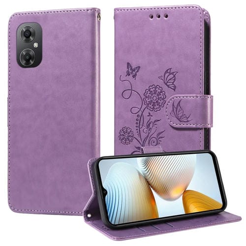 Funda de Cuero con Diseño de Mariposas y Flores En Relieve para Xiaomi Poco M4 5G/M5 4G (Morado)